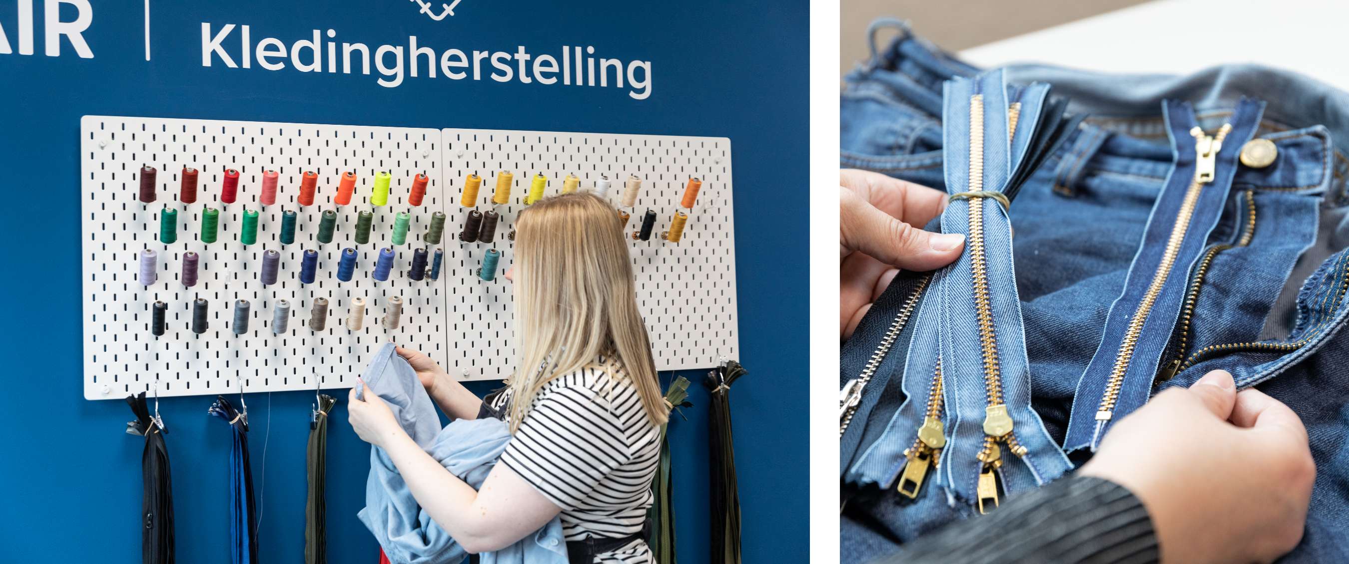 Nous voulons que vous puissiez profiter de vos vêtements le plus longtemps possible, c’est pourquoi nous nous engageons à prolonger leur durée de vie grâce à notre service de réparation des vêtements interne. Nos réparateurs s’occupent de vos vêtements avec le plus grand soin dans notre atelier à Hoboken, et vous garantissent un résultat impeccable.