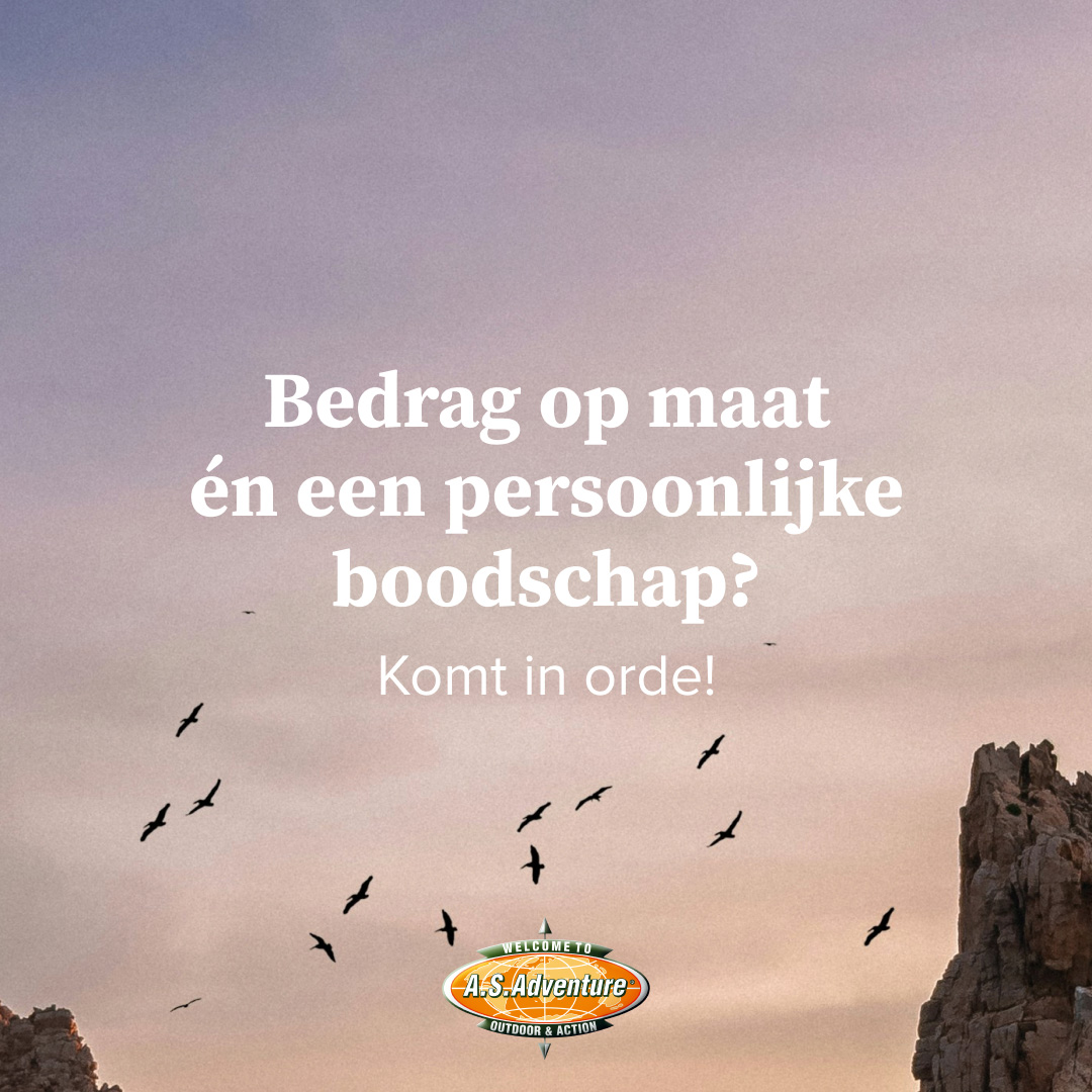 Van avontuurlijke (relatie)geschenken tot kwaliteitsvolle uitrusting: bij A.S.Adventure vind je alles om medewerkers of klanten blij te maken. Onze knowhow en passie voor outdoor zetten we dan ook graag in voor jouw organisatie. En voor wie niet kan kiezen, is de A.S.Adventure cadeaubon de perfecte oplossing.