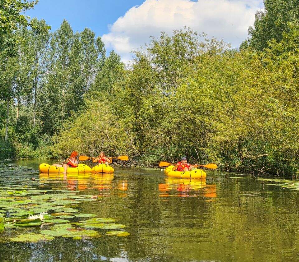 • Packraft en peddels: “Die kan je op verschillende plaatsen huren.”
