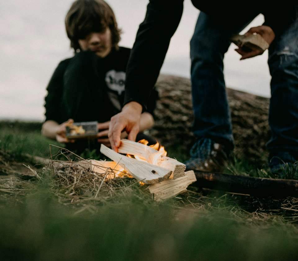 Om je kamp op te slaan, kies je bij voorkeur een droog, vlak stuk grond, met tent, zeil of zonder hulpmiddel. Doe dit drie uur vóór het donker wordt, zodat je alle voorbereidingen bij voldoende licht kunt treffen. Eén daarvan is vuur maken. Enkele do’s en don’ts: